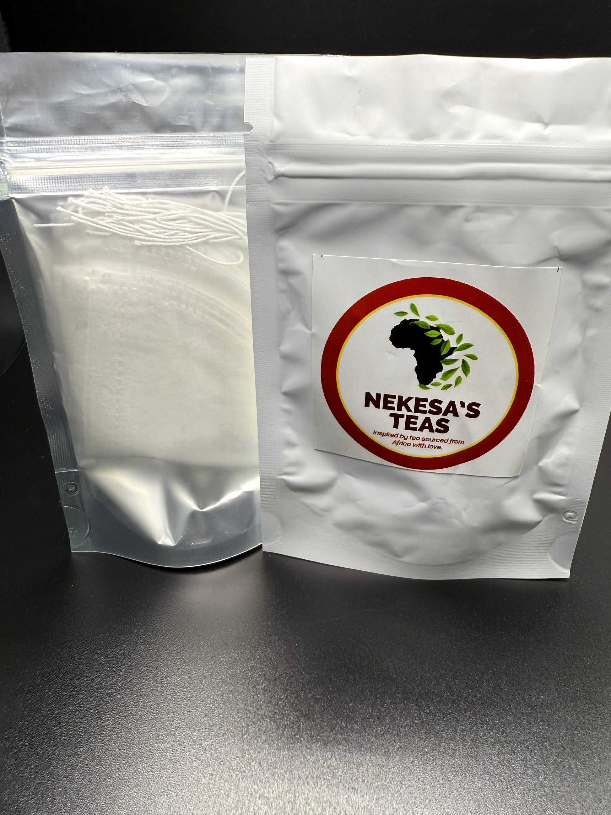 A bag to steep loose tea leaves in hot water. A package of 15 bags.